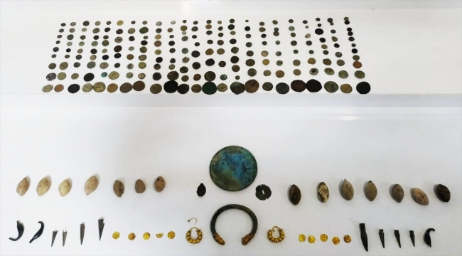 Zanlılara ait araçta yapılan aramalarda 243 sikke ve 46 tarihi eser niteliği taşıyan obje ele geçirildi.
