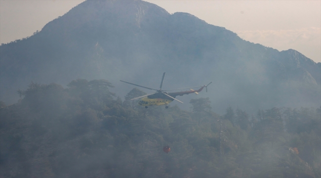 Bölgede etkili olan rüzgar nedeniyle kısa sürede yayılan alevlere Antalya Orman Bölge Müdürlüğüne bağlı 13 arazöz, 4 helikopter, 2 dozer ve çok sayıda orman işçisi müdahale ediyor.