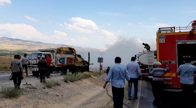 Kırıkkale'nin Karakeçili ilçesinde seyir halindeki kamyonun kasasındaki sap balyaları alev aldı.