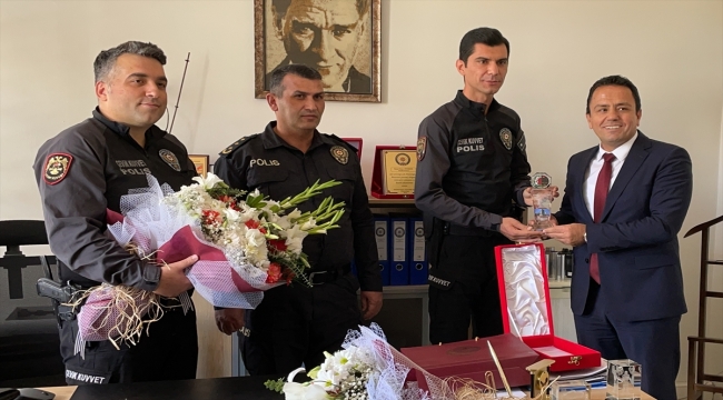 Ardından Aladağ, Komiser Yardımcısı Buğra Kurt'a, başarısından dolayı çiçek ve plaket verdi.